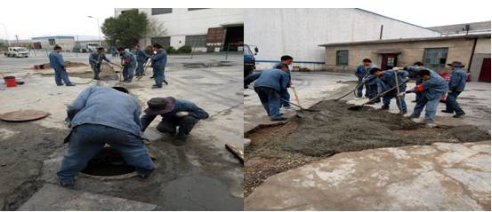 時至夏日,天氣多變。臨時土建維修隊充分發(fā)揮車間人員中懂得土建施工技能的優(yōu)勢,悉心謀劃,從職工家中借用攪拌機等施工機械,加班加點有序進行著屋面防水修復(fù)、路面地基處理、排水溝的修復(fù)等維修工作。在公司車隊密切配合下,截至6月4日共修復(fù)屋面防水358平方米,路面維修290平方米、路基整修87立方米,排水溝修復(fù)15米,生產(chǎn)廠區(qū)道路破裂,瀝青澆灌等各項工作。