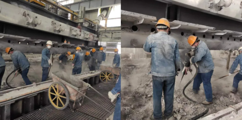 電解槽大修如同外科手術,需在有限停槽期內完成數(shù)個部件的拆解、檢測與更換。延誤一天,意味著效益的損失。為搶進度,電解車間將人員分成四班倒,可實際干起來,所有人都不約而同選擇了“連軸轉”。技術員小王剛下白班,見夜班人手緊張,抓起手套又鉆進了槽底:“早一天啟動,就能多增加1噸多的鋁液!”槽頂排風機的嗡鳴聲中,安全員老周扯著嗓門喊:“防護面罩戴緊!粉塵吸進肺里要命!”他手里的強光手電掃過槽底,光束里翻騰的塵埃像一場無聲的雪暴。十幾米長的電解槽如同被解剖的巨獸,槽殼敞露,陰極鋼棒上斑駁的電解質結痂仿佛鱗片,記錄著它連續(xù)運轉10多年的疲憊。這是大修的關鍵戰(zhàn)役—— 7天內,必須讓電解槽“復活”。