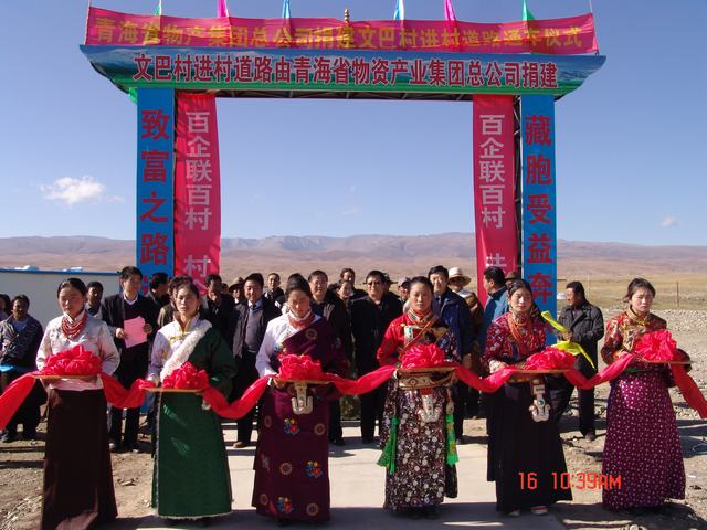 2011年10月16日,集團(tuán)總公司在共和縣江西溝鄉(xiāng)元者村舉行"百企聯(lián)百村"捐建共和縣江西溝鄉(xiāng)元者村黨員活動(dòng)室、科普文化室、醫(yī)療衛(wèi)生室和黑馬河鄉(xiāng)文巴村進(jìn)村道路工程項(xiàng)目交接儀式。集團(tuán)公司總經(jīng)理王玉輝、黨委書(shū)記白家林、紀(jì)委書(shū)記王仁芬、共和縣人大常委會(huì)主任尕瑪才讓、共和縣委常委、組織部長(zhǎng)官卻南見(jiàn)以及集團(tuán)"百企聯(lián)百村"活動(dòng)領(lǐng)導(dǎo)小組成員、總部全體職工、捐建工程項(xiàng)目部工作人員、施工方代表和有關(guān)縣、鄉(xiāng)、村領(lǐng)導(dǎo)、村民代表60余人參加交接儀式。