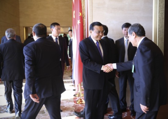 李克強(qiáng)與埃及代表團(tuán)成員握手