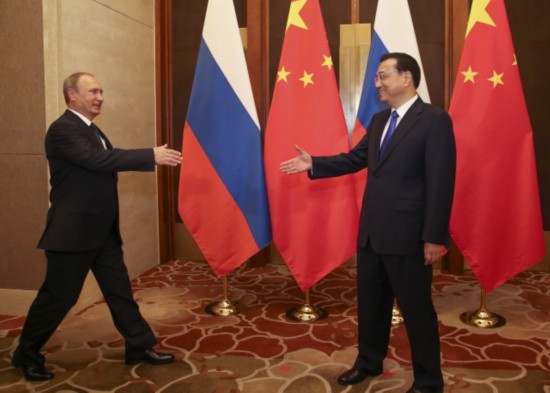 李克強(qiáng)總理會(huì)見俄羅斯總統(tǒng)普京時(shí)說:"中俄兩國是戰(zhàn)略伙伴,互為最大鄰國。共同維護(hù)二戰(zhàn)勝利成果,反對歪曲篡改二戰(zhàn)歷史,這是我們的共識(shí),也是對世界正義的伸張。"