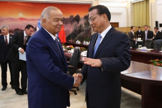 李克強(qiáng)總理會(huì)見烏茲別克斯坦總統(tǒng)卡里莫夫時(shí)說:"中烏可以在雙方感興趣的領(lǐng)域廣泛開展產(chǎn)能和裝備制造業(yè)合作。"