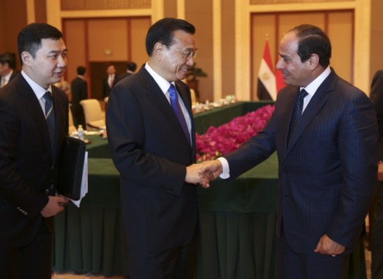 李克強(qiáng)總理會(huì)見埃及總統(tǒng)塞西,就對方希望"加強(qiáng)反恐合作"提議表示:"我們既要加強(qiáng)反恐合作,也要妥善解決熱點(diǎn)問題,更要高度重視發(fā)展經(jīng)濟(jì),以鏟除恐怖主義傳播的土壤。"