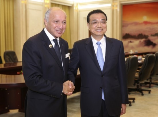 李克強(qiáng)總理會(huì)見法國外長法比尤斯時(shí)說:"希望把中法第三方合作和核能合作做成'南北合作'的示范項(xiàng)目,做成推動(dòng)世界經(jīng)濟(jì)向復(fù)蘇方向前行的引導(dǎo)性項(xiàng)目。"