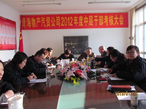 2013年1月28日,青海物產(chǎn)汽貿(mào)公司召開(kāi)了2012年度中層干部考評(píng)會(huì)議,公司領(lǐng)導(dǎo),各部、海東分公司負(fù)責(zé)人,公司中層副職和重點(diǎn)崗位、骨干員工代表共28人參加了會(huì)議。會(huì)議由黨支部書記黃曉梅主持,總經(jīng)理張宏民做了重要講話。